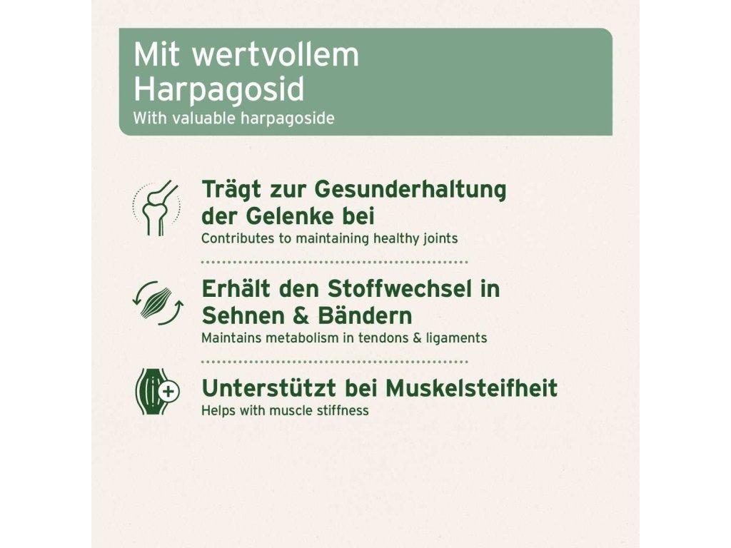 Náš Ďáblův dráp pochází z Namibie a je místním obyvatelstvem velmi ceněn pro své rozmanité vlastnosti. Tradice říká, že africký Ďáblův dráp podporuje vazy, šlachy a klouby. Tím tak podporuje normální funkci celého pohybového aparátu. V zásadě všechny naše suroviny, včetně ďáblova drápu pro psy a kočky, jsou pečlivě sklizeny a zpracovávány a pocházejí přímo z přírody. S tímto doplňkem pro psy a kočky můžete svému chlupatému kamarádovi nabídnout vysoce kvalitní, čistě rostlinnou podporu.