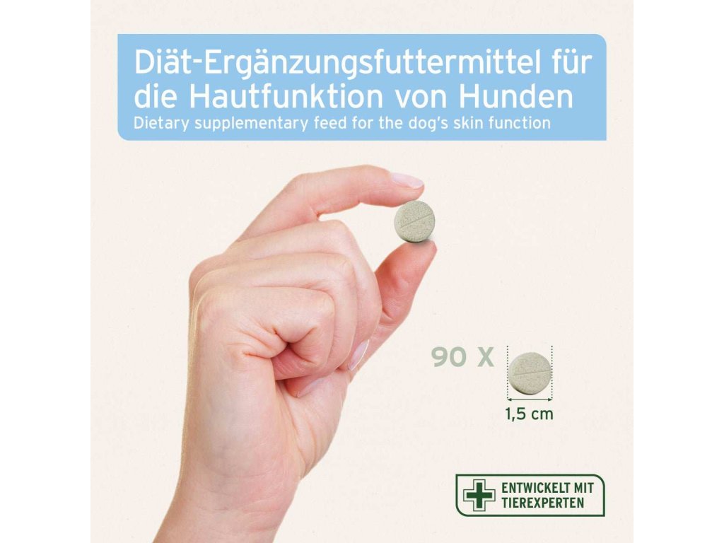 Složky obsažené v AniForte® Plus Fell & Haut jsou osvědčené pro péči o citlivou psí srst a kůži. Esenciální omega-3 mastné kyseliny z ryb a zinek mohou přispět k regeneraci pokožky a přirozené funkci pokožky. Přídavek MSM obsahujícího síru může zlepšit celkový vzhled kůže a srsti vašeho čtyřnohého přítele.