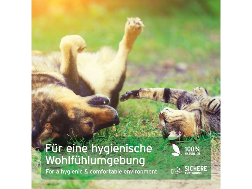 Zbytky produktu zlikvidujte s domovním odpadem. Vyčištěný obal standardně předejte k jeho recyklaci do příslušného druhu odpadu. Po aplikaci lze výkaly a stelivo smíchané s tímto přípravkem přidat do hnojení nebo kompostovat.