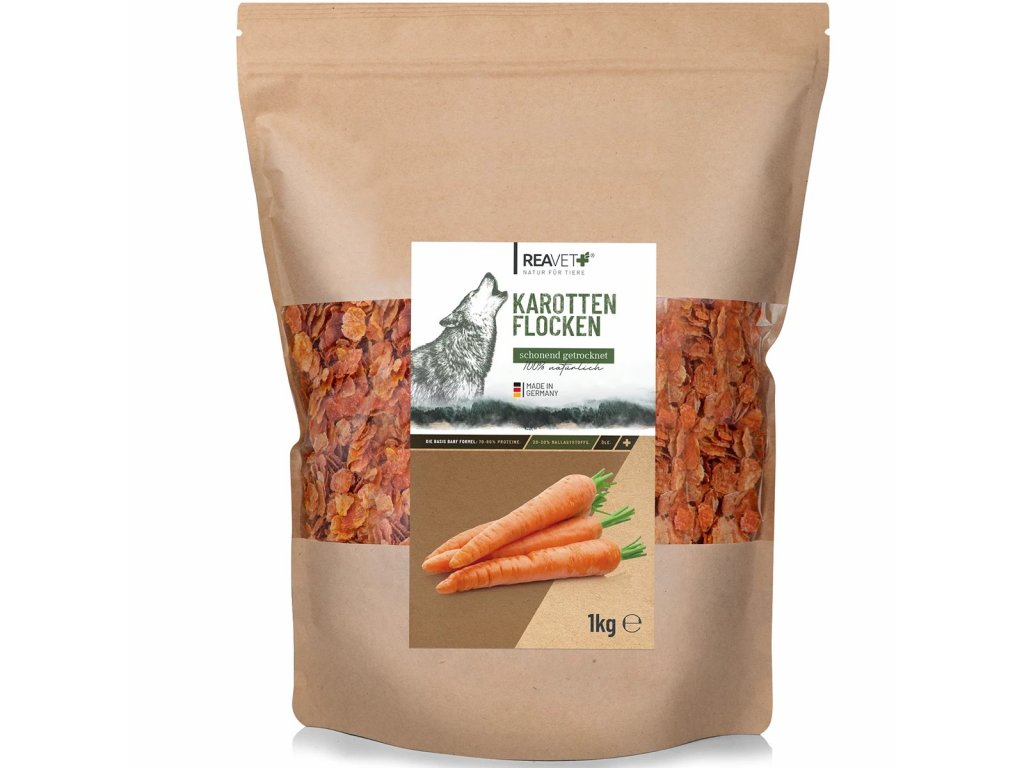 Dopřejte svému psovi lehce stravitelné a výživné mrkvové vločky REAVET, které jsou ideální jako doplněk k BARF stravě nebo k masovým konzervám. Tyto jemně sušené, bezlepkové a bezobilné vločky poskytují cenné živiny, vitamíny a vlákninu – skvělé i pro citlivé psy nebo při dietách. Díky přirozeně sladké chuti si je váš chlupáč okamžitě zamiluje!