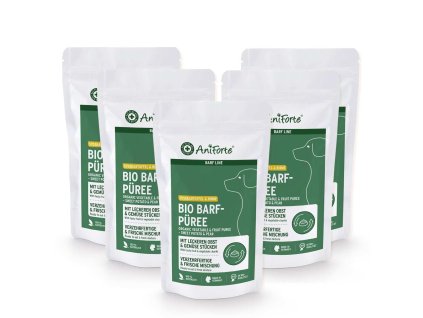 AniForte® BARF-Line organická zeleninová a ovocná směs s mrkví, cuketou, pastinákem, jablkem a brusinkami, je ideální pro kombinaci s čistými masovými konzervami nebo jako doplňková zálivka pro suché a mokré jídlo.