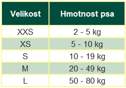 Správnou velikost vyberte podle váhy vašeho mazlíčka: