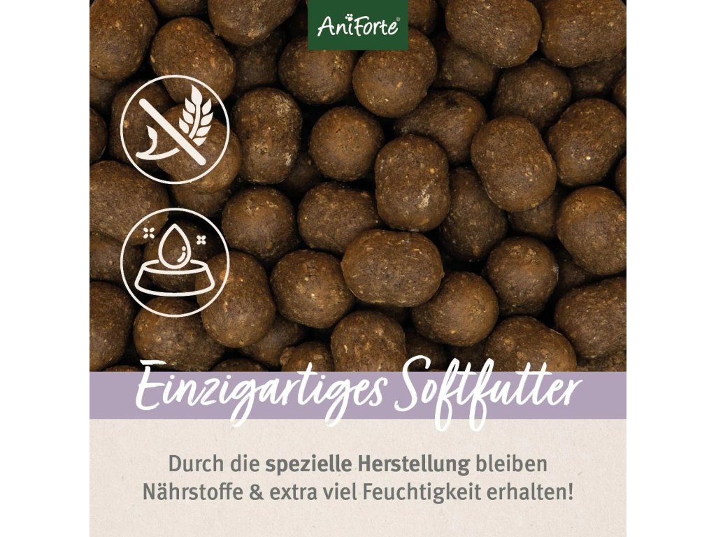Všechny ingredience jsou šetrně a pečlivě zpracovány tak, abyste svému miláčkovi servírovali více než lahodné a zdravé menu. Speciální výrobní proces nejen že zachovává všechny živiny a vitamíny, ale zadržuje navíc hodně vlhkosti. Vznikne tak jemná a obzvláště chutná konzistence, která především usnadňuje trávení a pečuje o zuby. Z měkkých granulí těží zejména starší psi, kteří mají citlivý žaludek nebo prochází či procházeli problémy s chrupem.