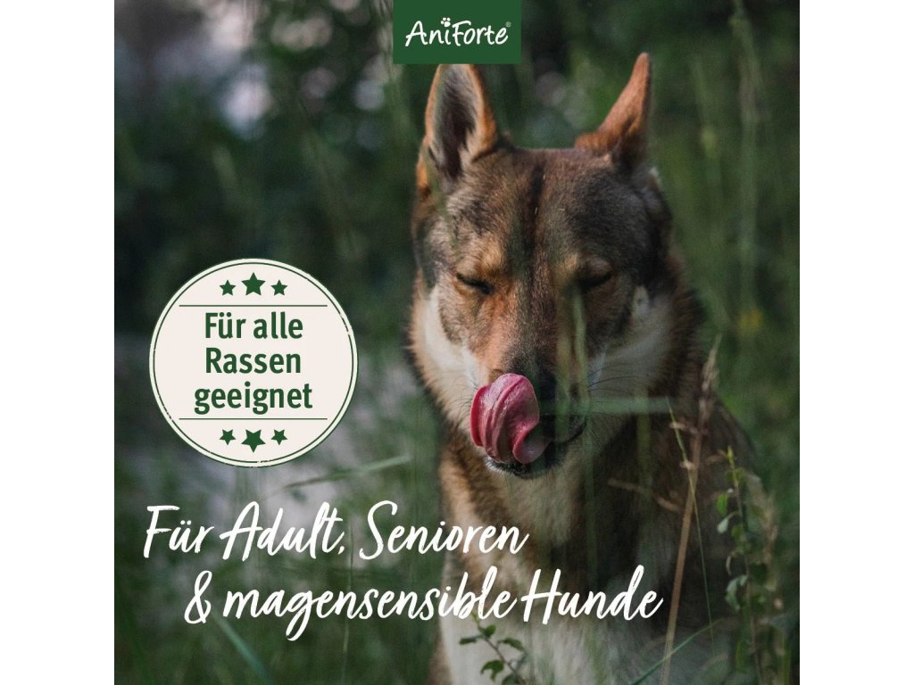 Naše chutná receptura pro psy se speciálními požadavky je ideální pro dospělé psy všech plemen, stejně jako pro seniory a psy s citlivostí na výživu. S AniForte® PureNature FjordSalmon spoléháme na přírodní ingredience, které jsou optimálně přizpůsobeny potřebám vašeho psa a poskytují mu esenciální omega-3 mastné kyseliny, stejně jako důležité vitamíny a minerály. Používáme pouze vybraný vysoce kvalitní zdroj živočišných bílkovin (single protein), jemné zeleninové variace, lehce stravitelné brambory jako sacharidy a bylinky a ingredience šité na míru výživné receptuře. V tom je naše měkké krmivo tak jedinečné. Co víc? Je také vysoce stravitelné a je vhodné i pro psy s alergií a citlivým žaludkem.