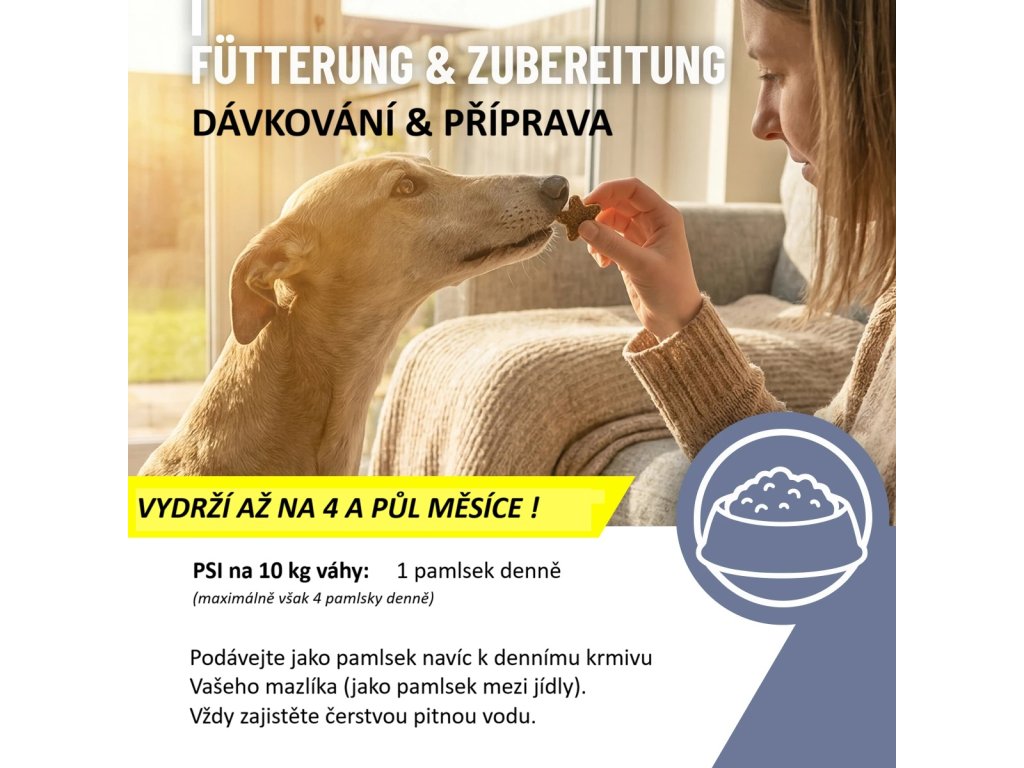 | ? V prášku, kapkách, kapslích, nebo?: | Granule, pamlsky |