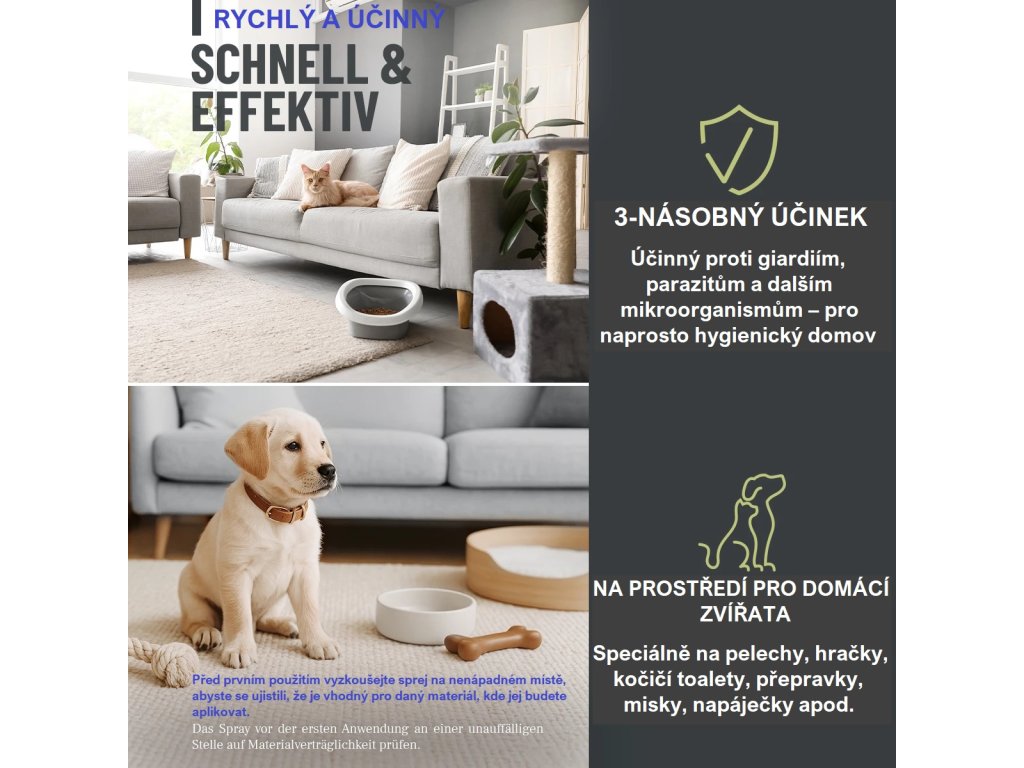 Giardia sprej - povrchová desinfekce pro prostředí všech domácích mazlíčků (psi, kočky i drobní hlodavci)