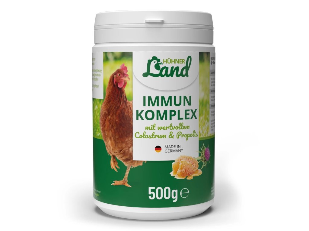 Náš HÜHNER Land Immun Complex Powder obsahuje přesně to, jak je pojmenován = komplexní koncentrovanou sílu pro vitalitu vašich křepelek, kuřat a drůbeže.