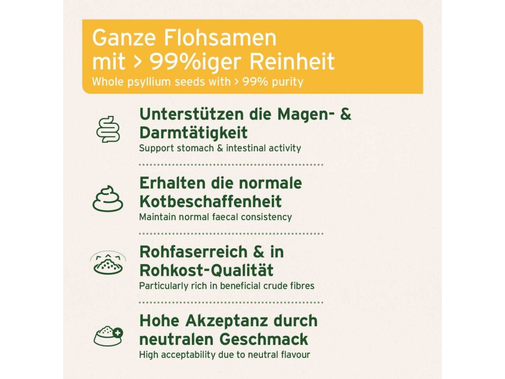 Tisíce spokojených zákazníků již léta důvěřují AniForte® Indian psyllium. Cenný doplněk krmiva s vysokým obsahem vlákniny je zvláště ceněn pro svou převážně neutrální chuť a s tím spojenou vysokou míru přijetí.