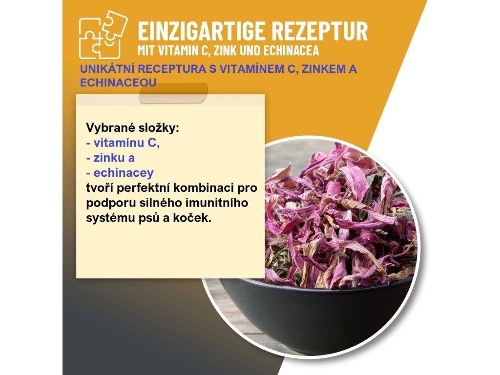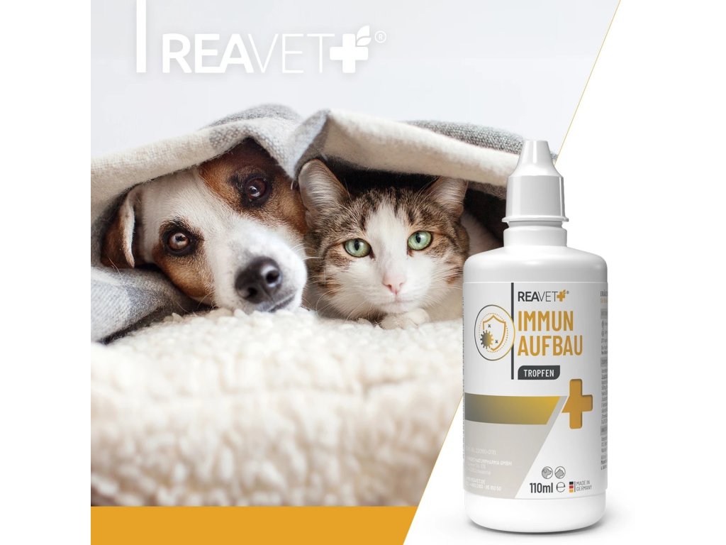 S našimi kapkami REAVET na posílení imunity získá váš pes nebo kočka čistě přírodní podporu – bez umělých aromat, barviv a cukru. Díky unikátní kombinaci vitamínu C, zinku a echinacei jsou naše kapky na posílení imunity optimální podporou imunitního systému.