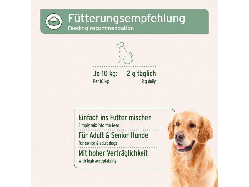 Prášek lze jednoduše přimíchat do krmiva. Dodáváme s praktickou dávkovací lžičkou.