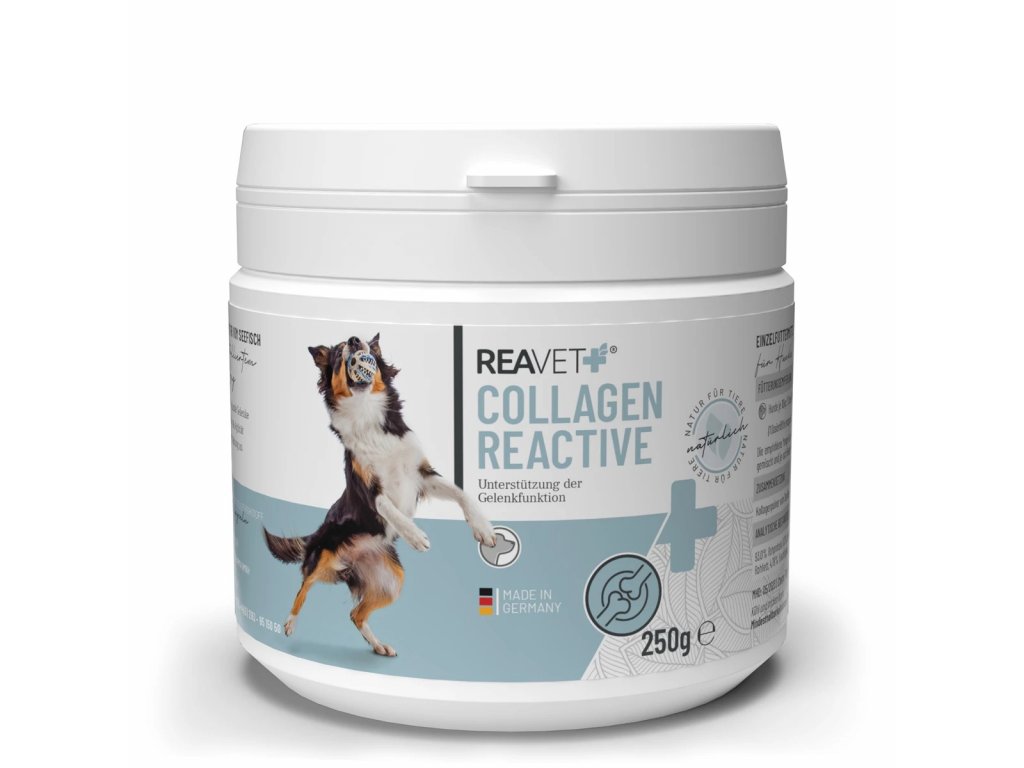 Kolagen může přirozeně podporovat normální funkci kloubů a agilitu vašeho čtyřnohého parťáka. Nachází se v kůži a také v chrupavce, šlachách, vazech a kloubech. Jak psi stárnou, produkují méně kolagenu, díky čemuž jsou náchylnější k problémům s klouby a kostmi. Pomocí kolagenových peptidů, které jsou psům dodány pomocí našeho doplňku REAVET Collagen Reactive, lze klouby stimulovat k větší produkci kolagenu a tím pozitivně ovlivnit pohybový aparát jedince. Kolagen v podobě doplňku může pomoci zachovat ideální průtok krve cévami a podpořit syntézu vlastního kolagenu vašeho mazlíčka. Doplněk snadno přimícháte do denního krmiva - neobsahuje obiloviny a snadno se rozpouští. Obzvlášť ceněna je neutrální chuť i aroma a s tím spojená vysoká míra přijetí.