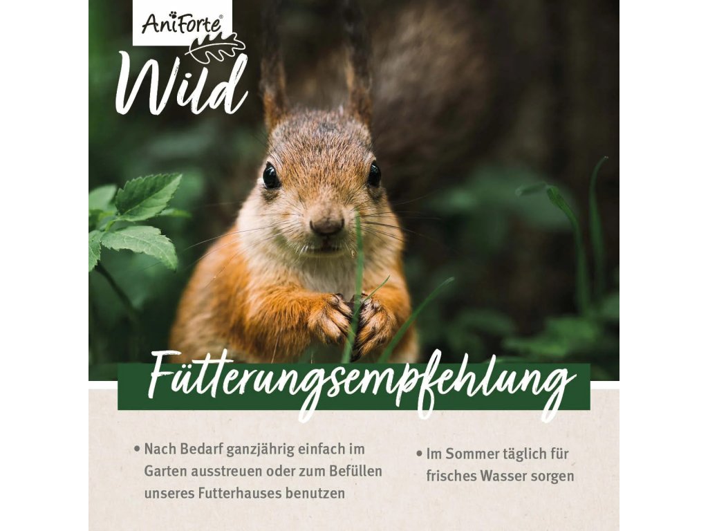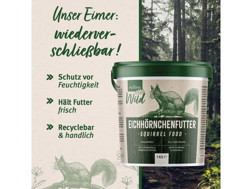 Tip: Naše celoroční krmivo pro veverky je ideální na plnění AniForte® Wild krmítka pro veverky (viz související produkty). Nejen, že tím uděláte velkou radost roztomilým hlodavcům, ale také se můžete po celý rok těšit na skvělé pozorování veverek na vlastní zahradě.