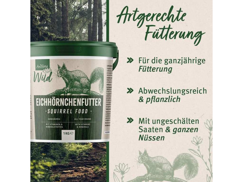 Nejen volně žijící ptáci, ale i veverky trpí měnícími se podmínkami prostředí. Díky tomu je pro ně stále obtížnější najít vhodné a vyvážené jídlo po celý rok. S naším krmivem pro veverky AniForte® Wild vytvoříte perfektní celoroční základnu pro tyto malé hlodavce a dopřejete si vzrušující možnosti pozorování veverek ve vaší zahradě.