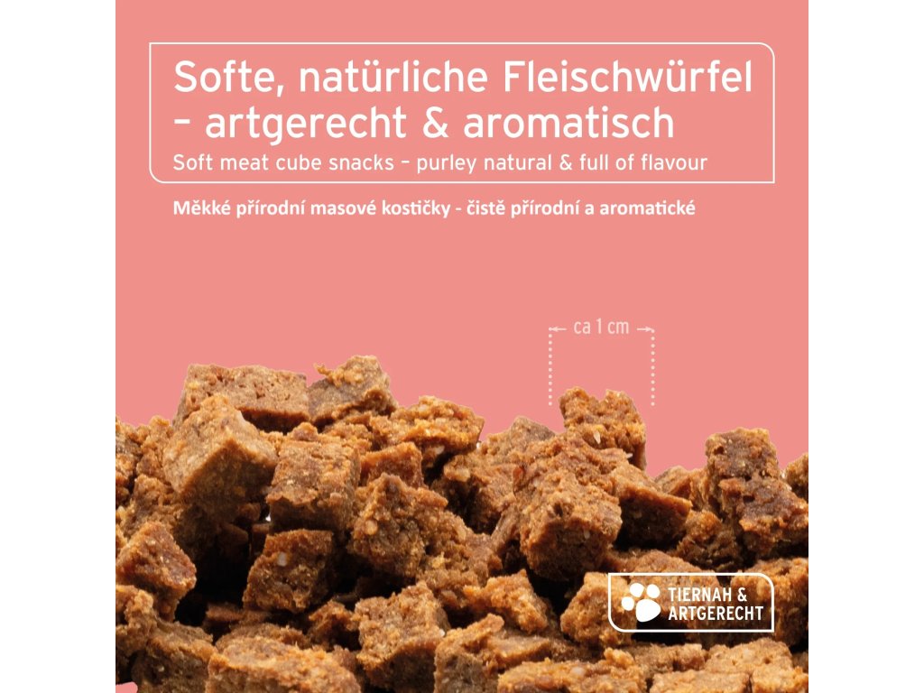 S měkkými pamlsky AniForte® nabízíte své kočce speciální odměnu vyrobenou pouze z jednoho zdroje živočišných bílkovin – kvalitního hovězího masa. Tyto malé kostky jsou bohaté na vysoce kvalitní maso, zcela bez umělých přísad, obilovin a cukru.