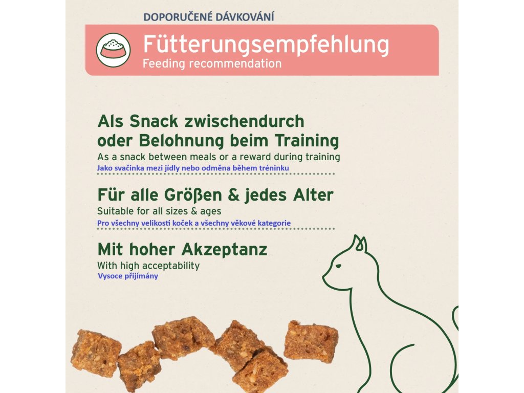 - Chutný a druhově vhodný pamlsek pro kočky všech věkových kategorií