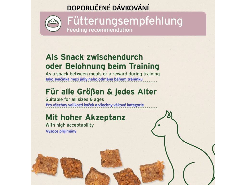 - Chutný a druhově vhodný pamlsek pro kočky všech věkových kategorií