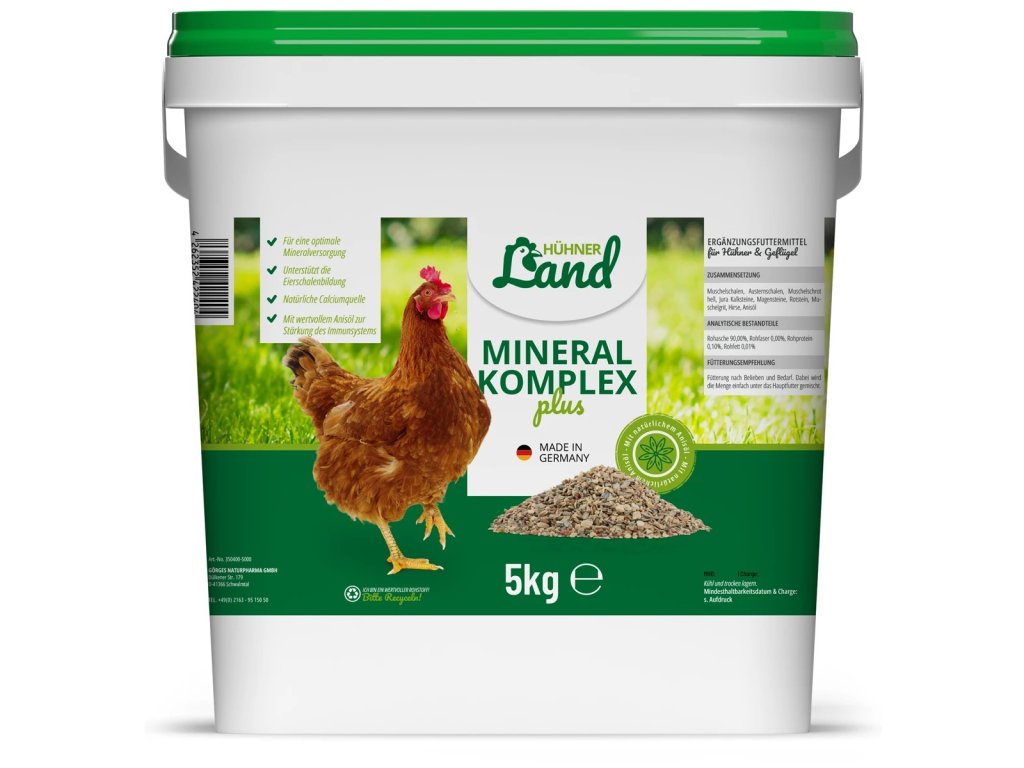 Náš HÜHNER Land Mineral Komplex Plus pro drůbež je vysoce kvalitní, zcela přírodní doplněk stravy bez umělých přísad, který lze podávat po celý rok. Vhodné pro všechny druhy drůbeže. Díky šetrnému zpracování jsou plně zachovány přírodní aktivní složky. Chutná skvěle a drůbež se s ním cítí velmi dobře!