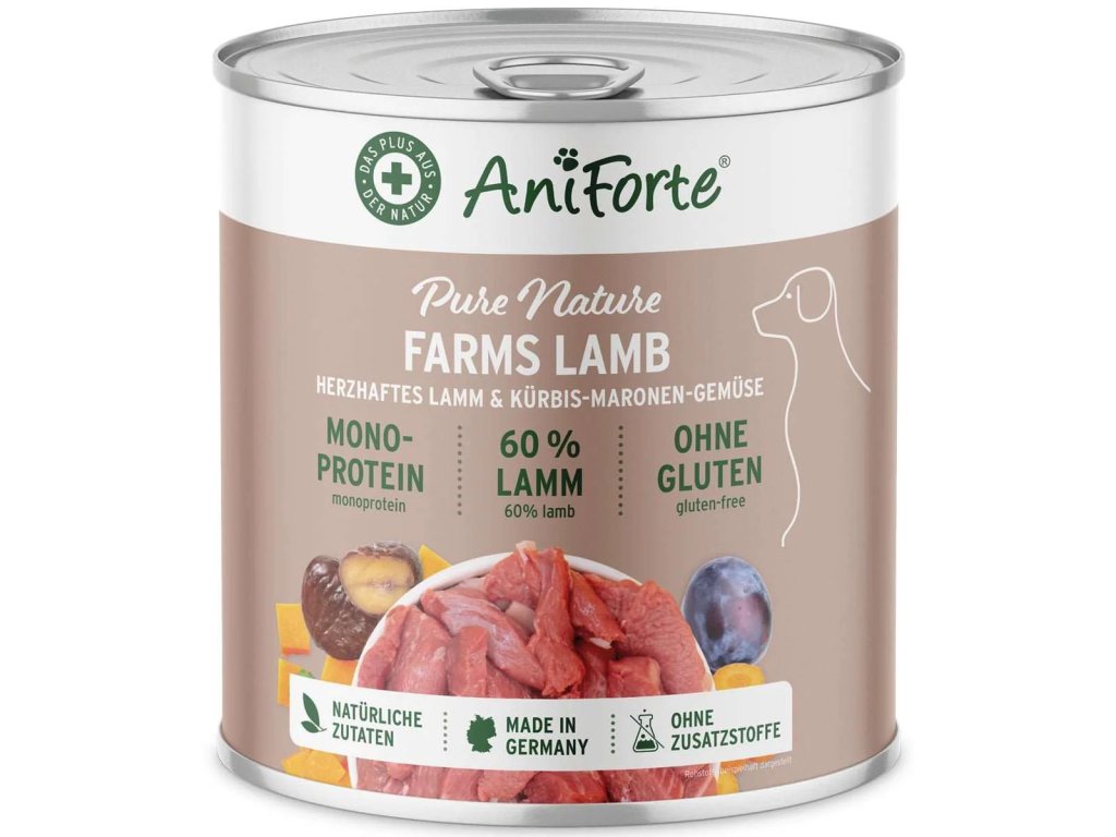 Mokré krmivo AniForte® PureNature je vysoce kvalitní jednoproteinové krmivo pro psy v superprémiové kvalitě - vyrobené v Německu podle potravinářských norem. Tajemstvím naší kvality je ve velkém množství čerstvého a kvalitního masa, které pro AniForte® PureNature používáme. Dbáme na vysokou kvalitu našich surovin a podrobujeme je pravidelným veterinárním kontrolám! Samotná kontrola však není jedinou zárukou našich vysokých standardů kvality. Maso získáváme téměř výhradně od výrobců, s nimiž již léta spolupracujeme v důvěryhodném vztahu. Suroviny jsou zpracovány co nejrychleji, aby byla zachována jejich čerstvost a přirozené vitamíny. Tímto způsobem dokážeme téměř zcela zachovat všechny cenné ingredience. Jen tak zajistíme dobrou výživu, která navíc obzvláště dobře chutná.