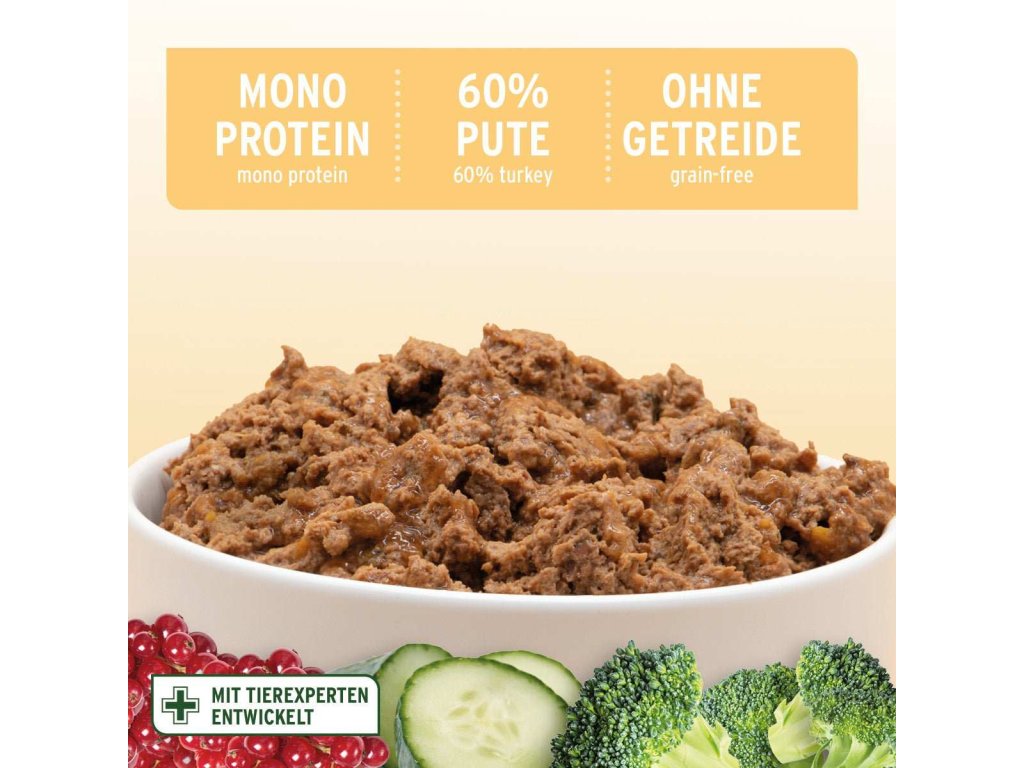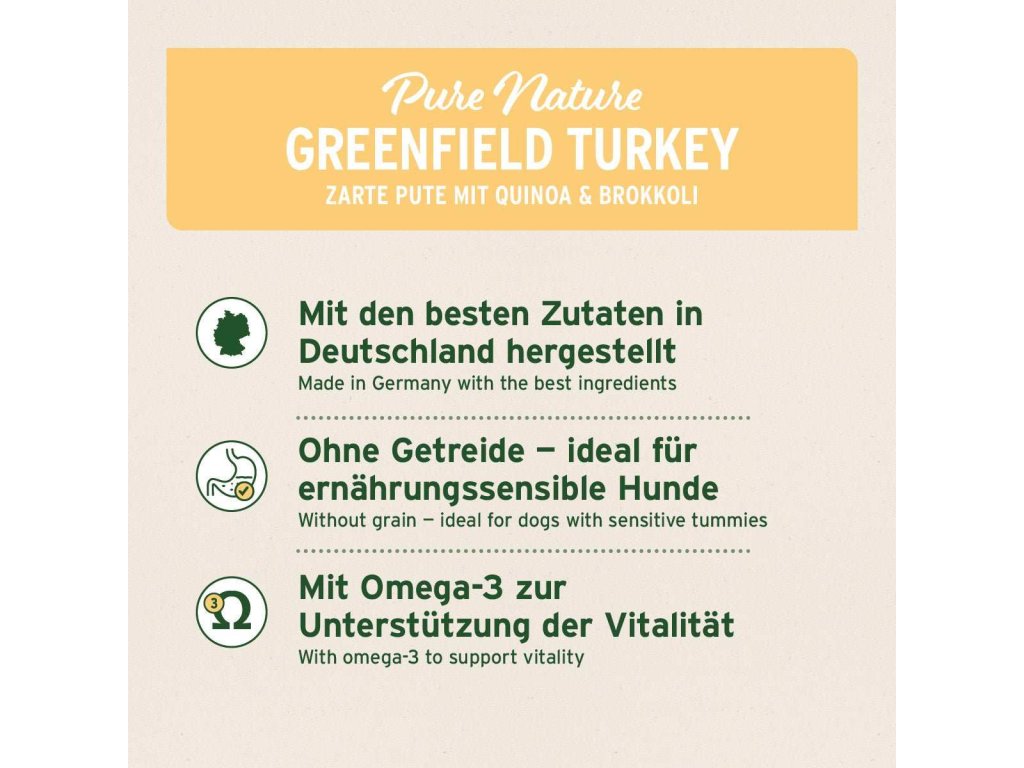 Mokré krmivo "PureNature GreenfieldTurkey - krůtí maso s quinoa, a 2x BEZ => bez obilovin a bez lepku! => vhodné pro alergiky