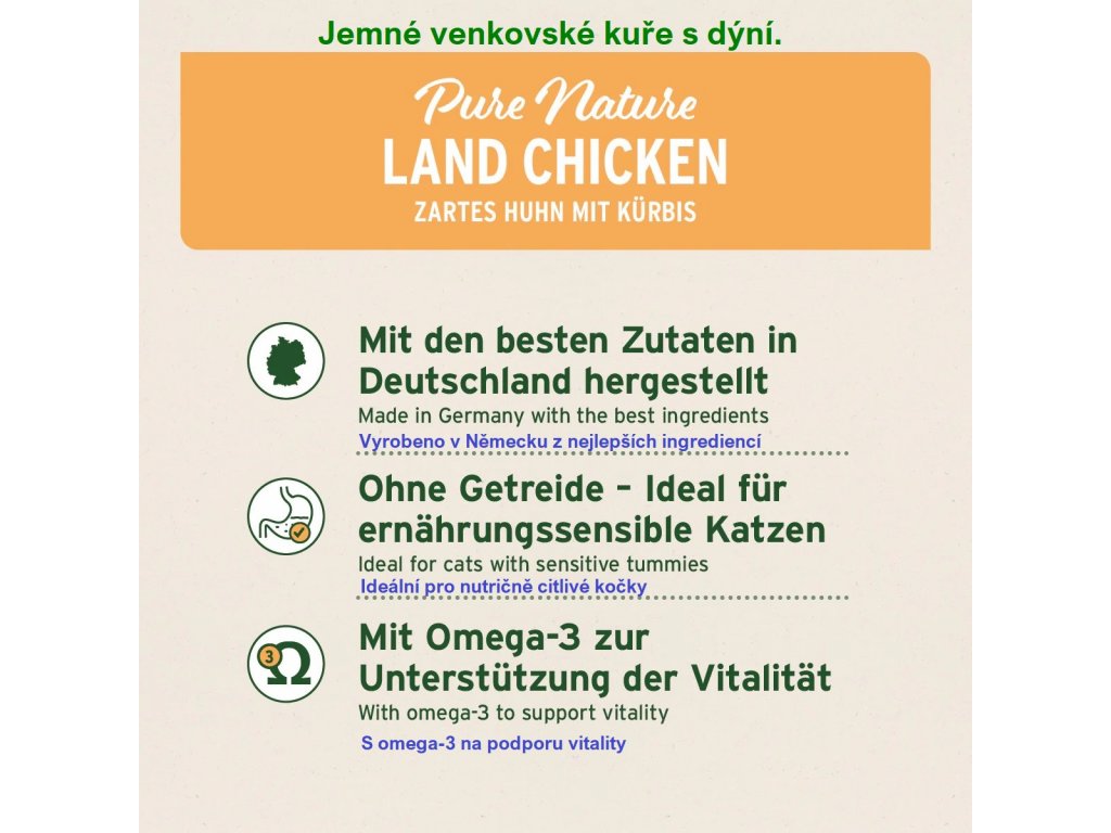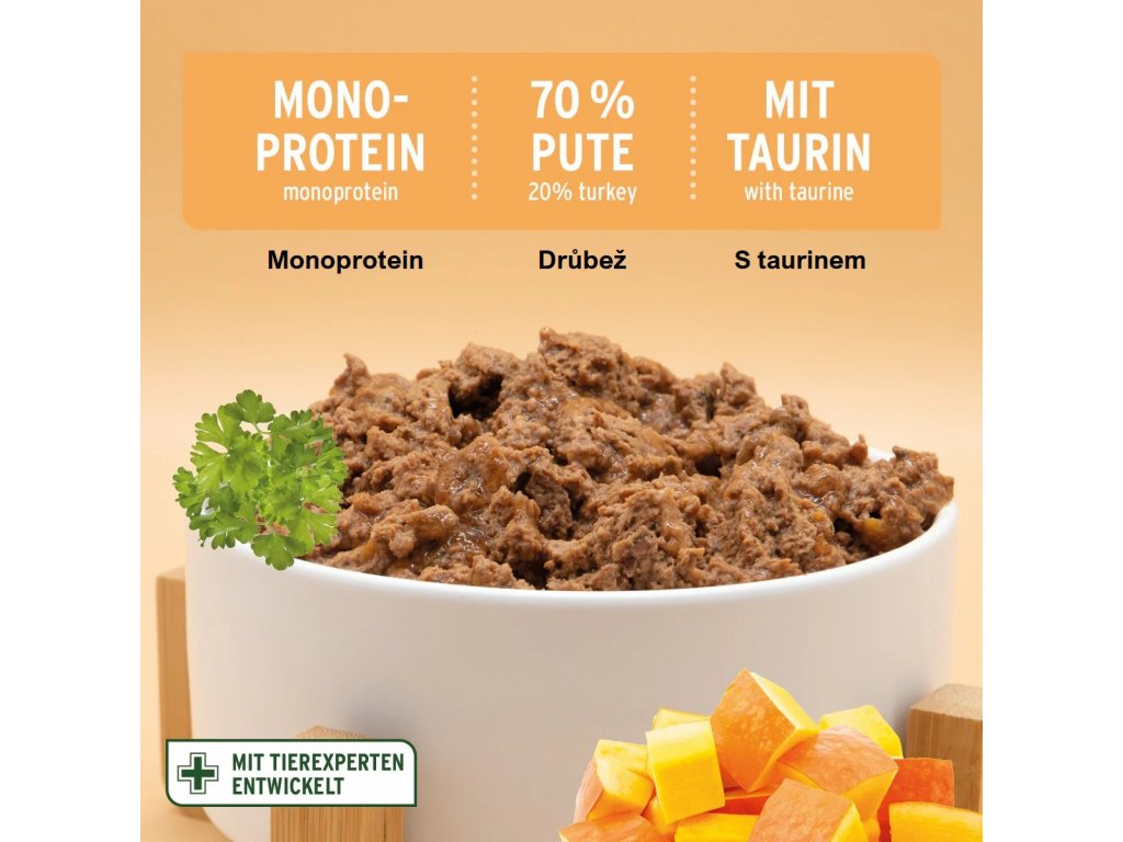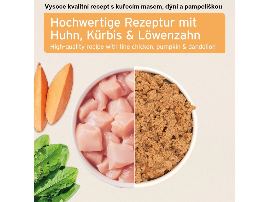 - Jedinečný recept s čerstvým a vysoce kvalitním kuřecím masem a dýní.