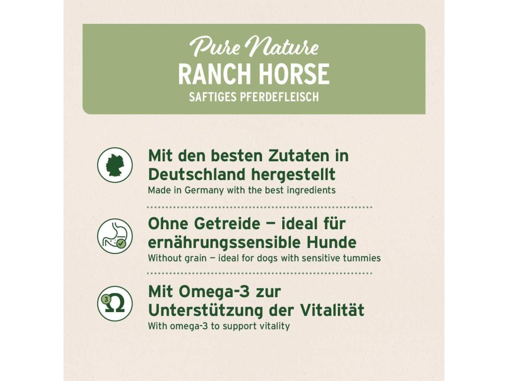 Mokré krmivo "PureNature RanchHorse" pro psy - koňské maso s batáty a jablky, a 2x BEZ => bez obilovin a bez lepku! => vhodné pro alergiky