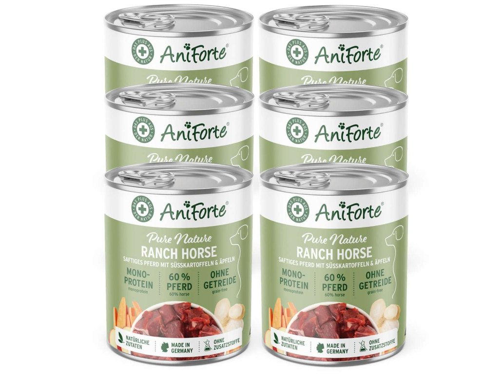 AniForte® PureNature RanchHorse je extra kompatibilní menu lehkého jídla pro všechny náročné gurmány. Je obzvlášť vhodné pro nutričně citlivé psy všech plemen s jejich speciálními potřebami.