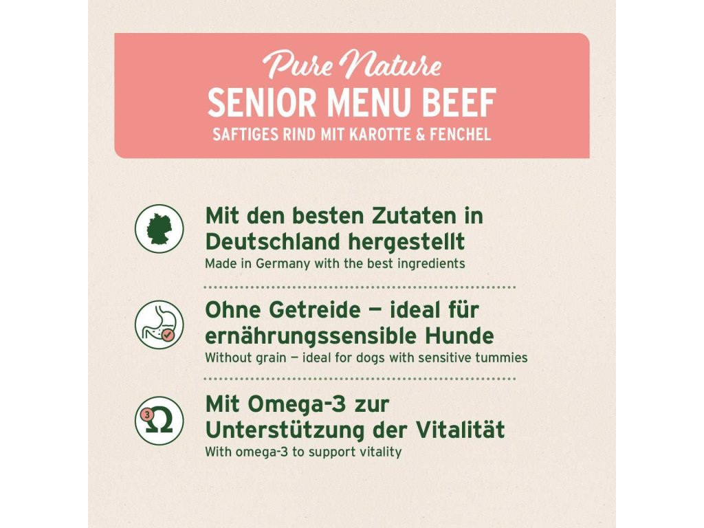 Mokré krmivo "PureNature SeniorMenu - hovězí maso s mrkví, vysoce kvalitní maso bez lepku!
