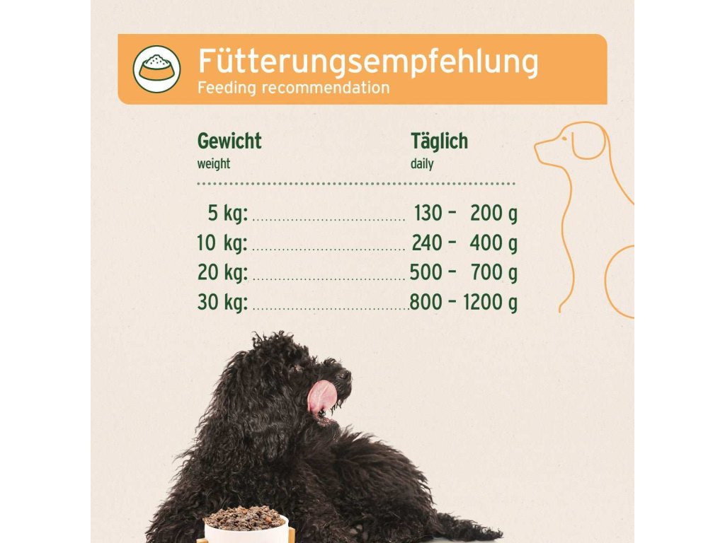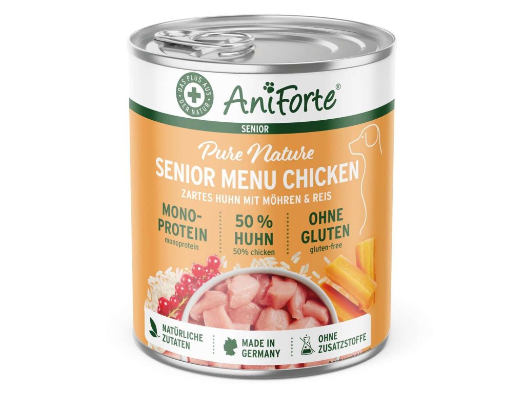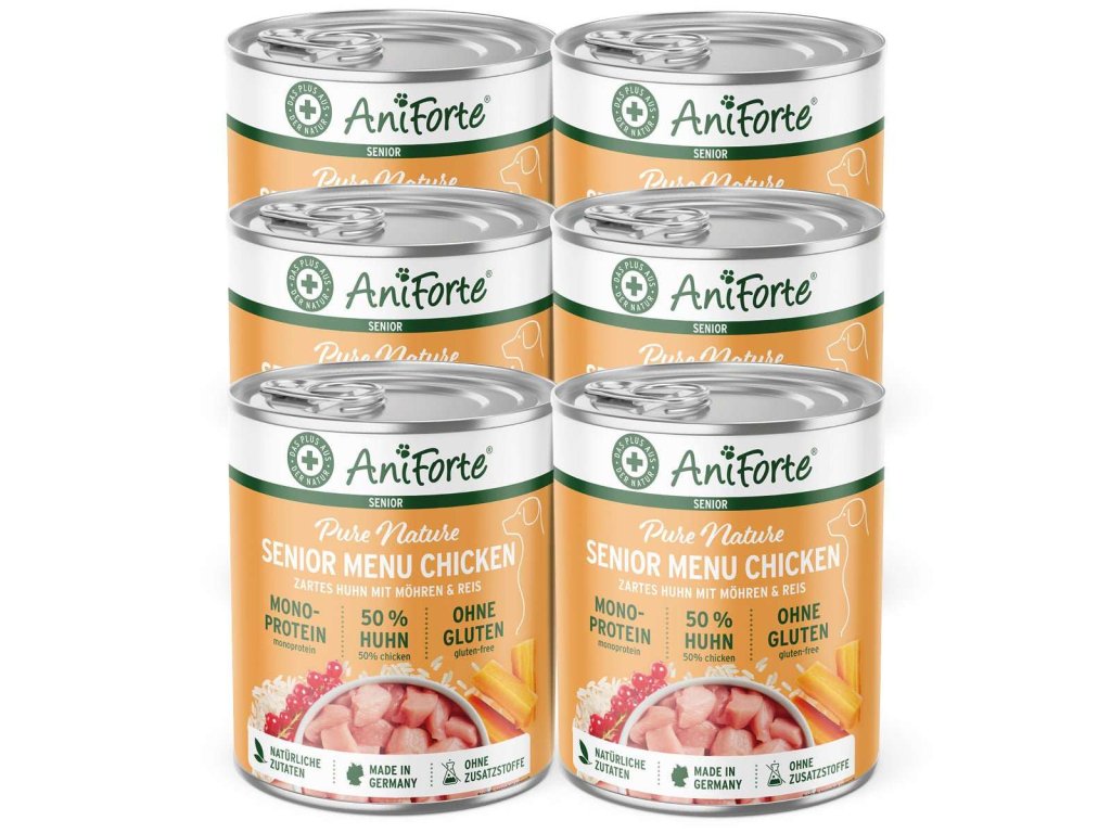 Naše chutná receptura pro psy se speciálními požadavky je ideální pro psy všech plemen, zejména pro starší a staré psy. Mimořádně dobře snášené jídlo je bohaté na omega-3 mastné kyseliny, vitamíny a minerály. U mokrého krmiva AniForte® PureNature také spoléháme na přírodní ingredience, které jsou dokonale přizpůsobeny potřebám vašeho psa. Mokré krmivo AniForte® je vysoce stravitelné a dobře snášené díky typu bílkovin, které obsahuje, a vybrané zelenině a ovoci. Jde o vysoce kvalitní jednoproteinové krmivo v superprémiové kvalitě.