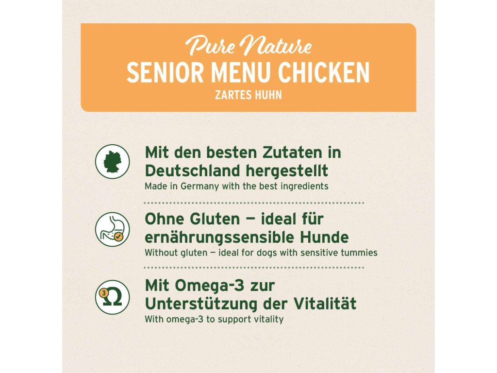 Mokré krmivo "PureNature SeniorMenu - kuřecí maso s mrkví, vysoce kvalitní maso bez lepku!