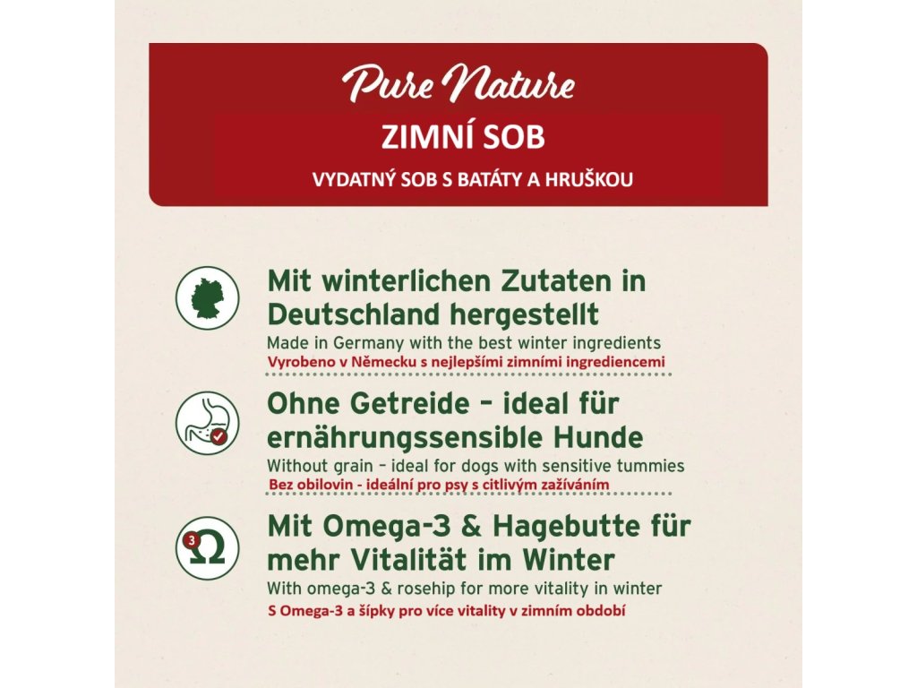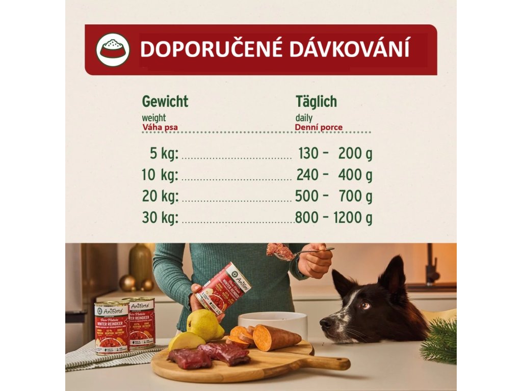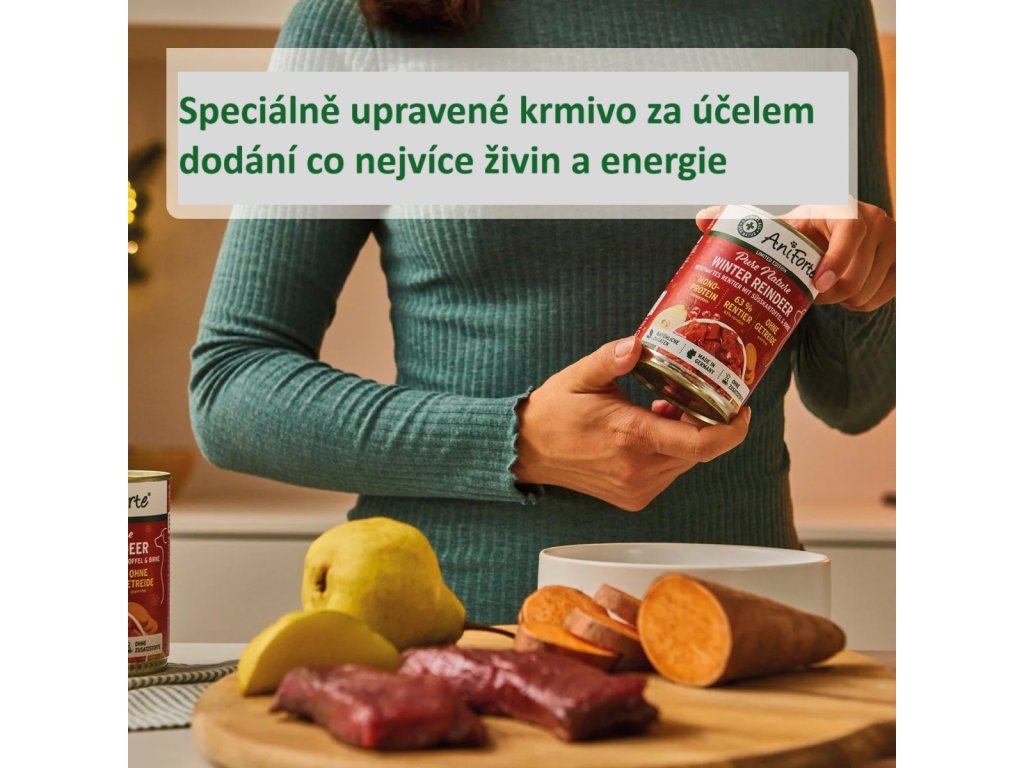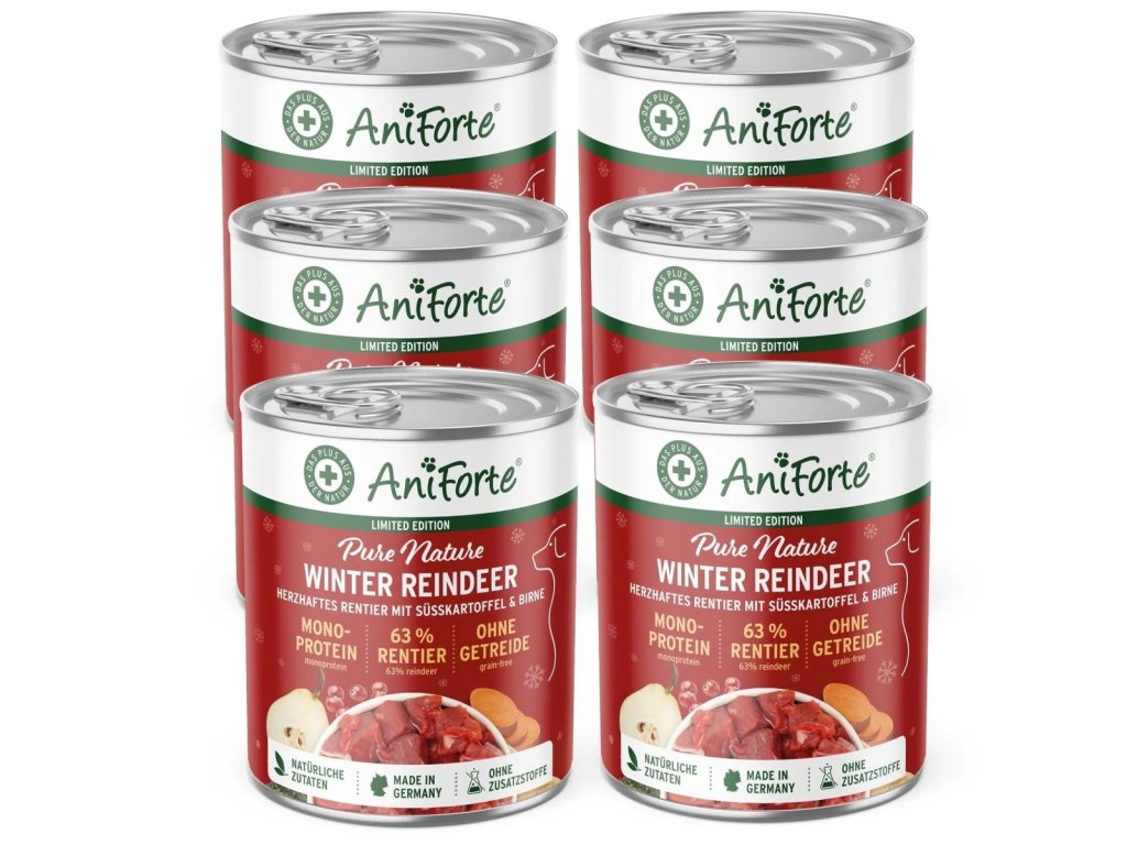 Zimní svátek pro psí gurmány! Dopřejte svému čtyřnohému příteli chuť severu s AniForte® Pure Nature Winter Reindeer – sobím masem, sladkými bramborami, hruškou a šípky. Tato zimní limitovaná edice spojuje vysoký podíl masa s poctivou dávkou přírodních vitamínů, minerálů a omega-3 mastných kyselin – ideální výživa pro chladné měsíce.