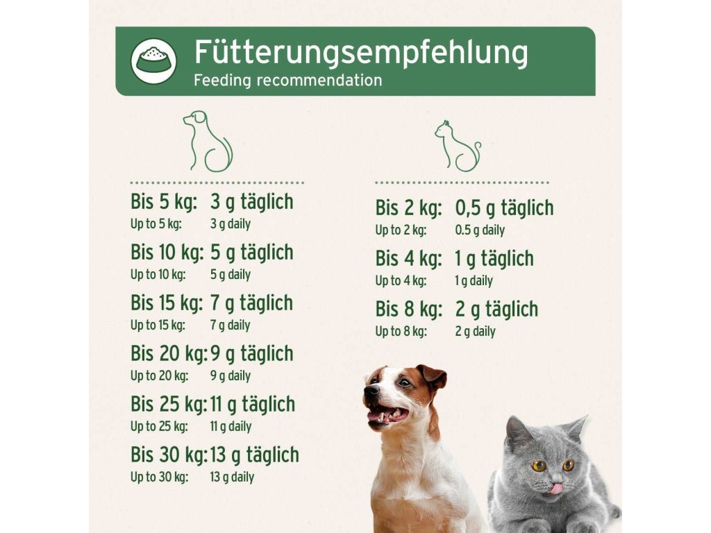 - Optimální, originální doplněk každodenního (syrového) krmení nebo vařeného jídla.