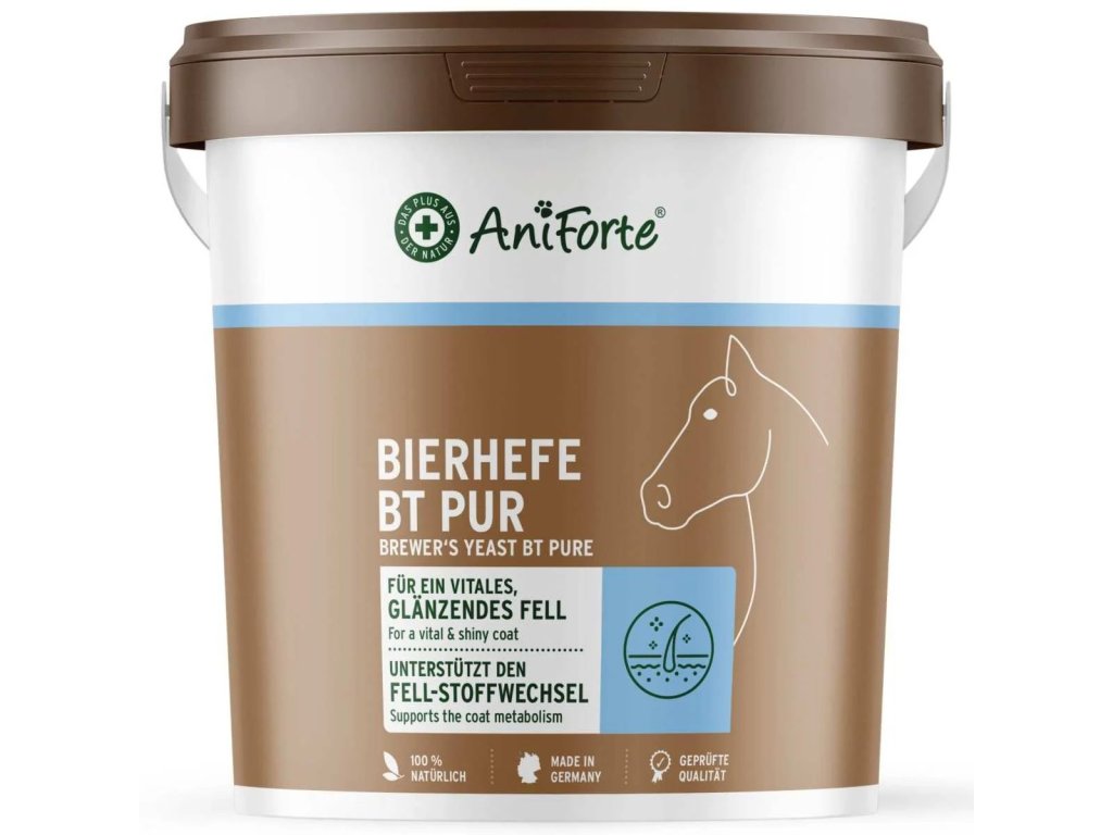 AniForte® pivovarské kvasnice BT Pur jsou cenným vedlejším produktem při výrobě piva a osvědčeným krmným doplňkem s dlouholetou tradicí ve výživě koní. Četné nutriční a fyziologické výhody tohoto přírodního produktu mají podpůrný vliv na zdraví a pohodu vašeho čtyřnohého přítele. Pivovarské kvasnice jsou díky cenným složkám oblíbeným dodavatelem živin, které příznivě působí na matnou srst vašeho koně a které rovněž podporují jeho trávení. Pravidelná dávka přírodních pivovarských kvasnic může udržovat normální metabolismus srsti a podporovat gastrointestinální trakt.