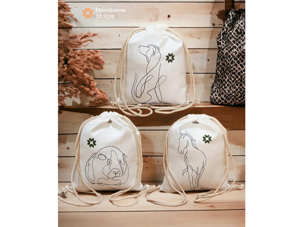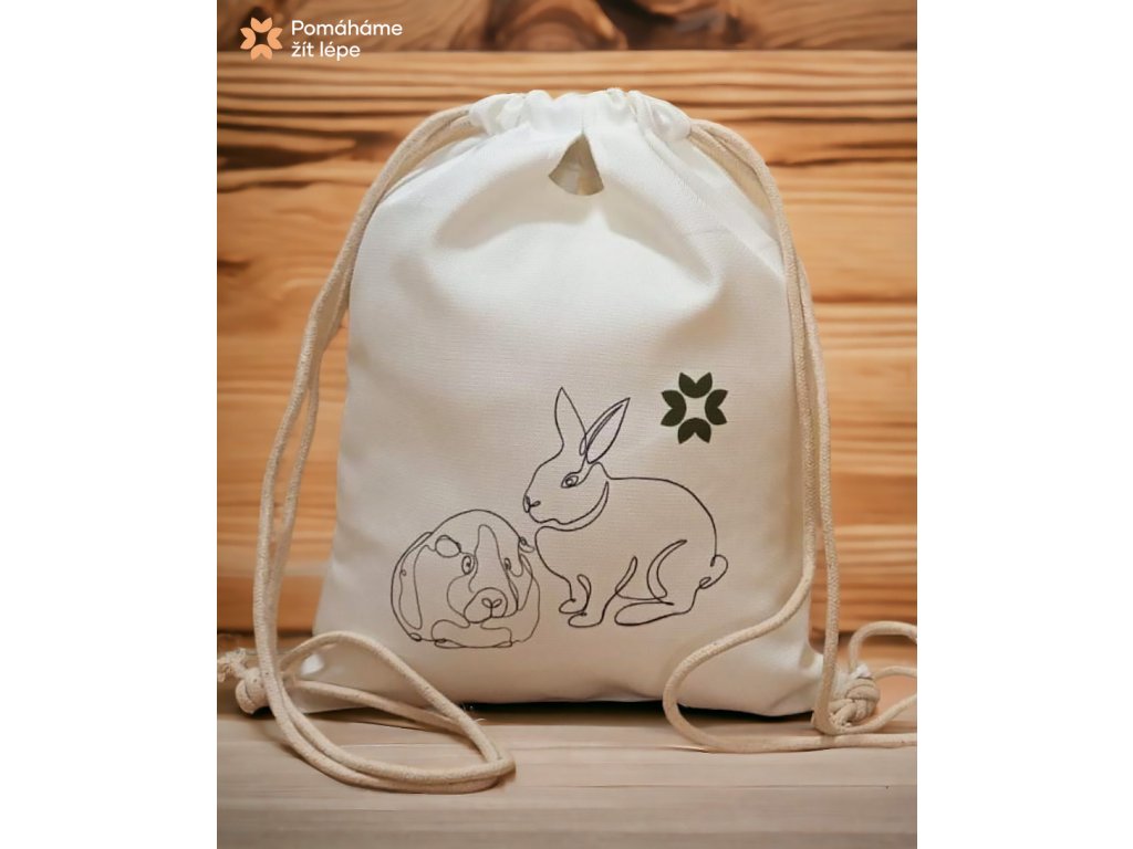 Plátěný vak na záda s naší autorskou kresbou (MORČE + KRÁLÍK)