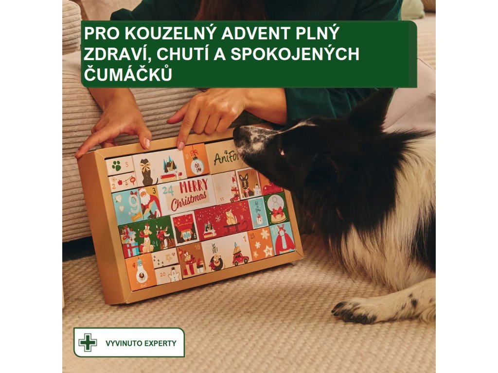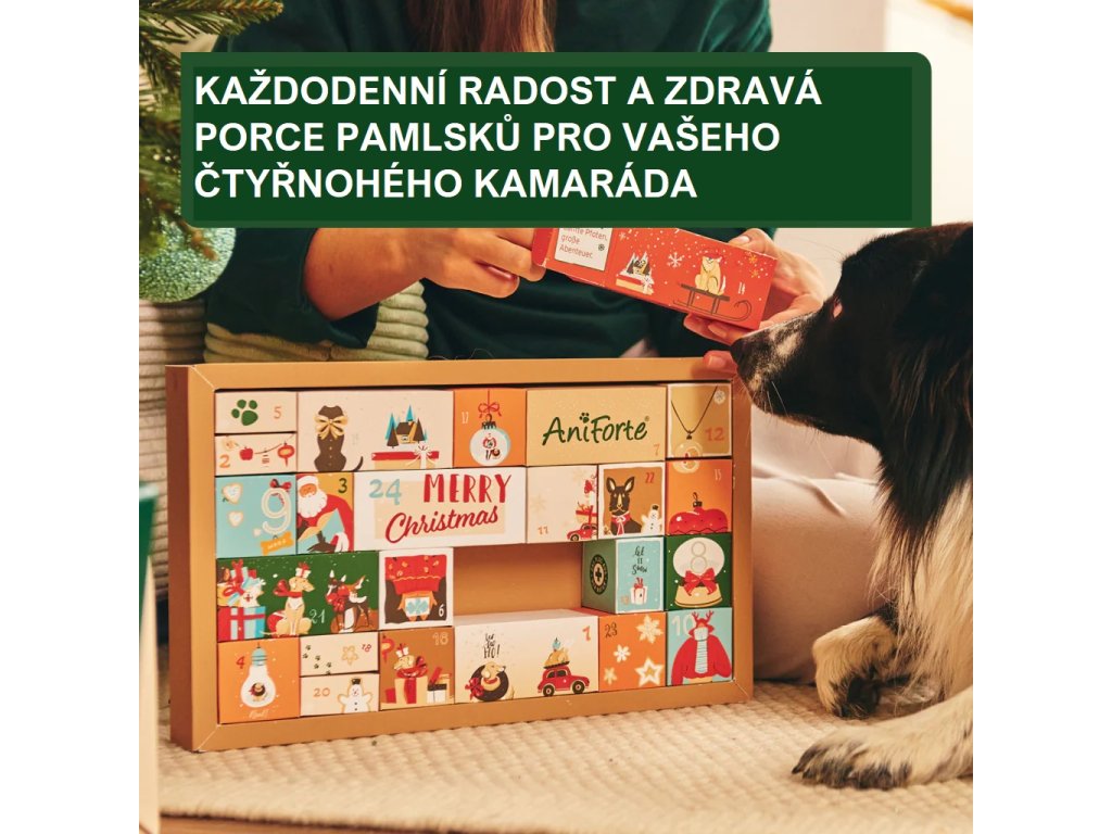 Dopřejte svému pejskovi kouzlo Vánoc s exkluzivním adventním kalendářem AniForte® Premium, který skrývá každý den jiné překvapení – funkční pamlsky bez obilovin, přírodní doplňky stravy a jemné produkty péče. Každý z 24 dárečků je vyroben z pečlivě vybraných, vysoce kvalitních přírodních surovin a přináší podporu pro trávení, klouby, zuby, imunitu i duševní pohodu vašeho psa.