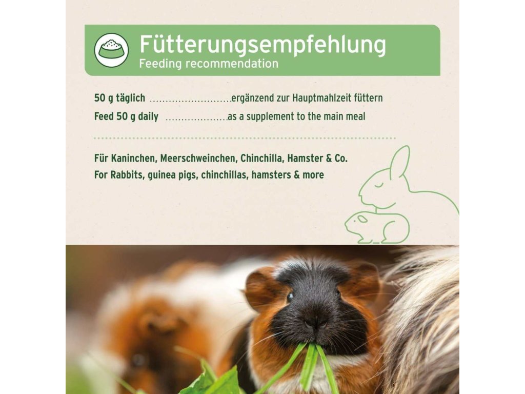 Krmivo pro hlodavce AniForte® Natur lze podávat jako doplněk k dalšímu hlavnímu jídlu. Dejte prosím na to, kolik jídla hlodavci sní za 24 hodin. Kromě toho vždy zajistěte dostatek čerstvé vody, sena, čerstvého ovoce a zeleniny.