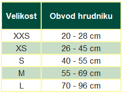 3. Podívejte se do tabulky velikostí a vyberte velikost, která odpovídá provedenému měření.