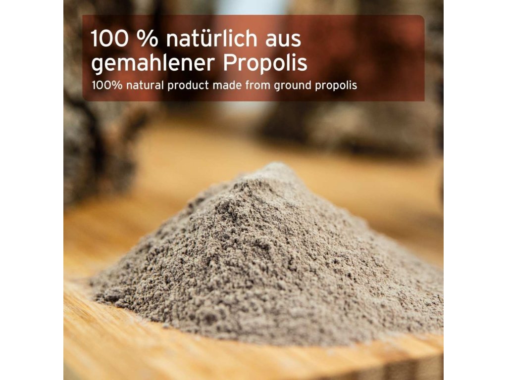 Propolis je produkt včel, který se skládá hlavně z pryskyřic různých stromů, pylu, vosků a silic. Pryskyřičná hmota se používá jako stavební materiál k utěsnění a údržbě úlu tak, aby zůstal chráněn před vnějšími vlivy. Propolisový prášek proto dokáže ochránit před vnějšími vlivy a přírodní cestou i vaše psy a kočky.