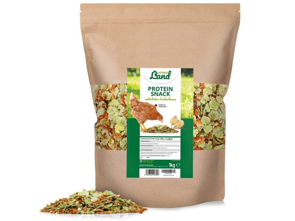 Proteinový snack HÜHNER Land není jen skutečnou lahůdkou, ale také skutečným zdrojem bílkovin, a to díky svým nutričně bohatým složkám. Přírodní složky hrachových vloček dodávají vaší drůbeži mnoho důležitých živin, především však vysoce kvalitní bílkoviny. Vynikající pochutina je optimalizována podílem sladkovodních krevet (Gammarus), díky čemuž je směs obzvláště chutná. Bílkoviny jsou důležitou součástí vyvážené stravy drůbeže a mají pozitivní vliv na produkci vajec. Podporují růst a brání pelichání.