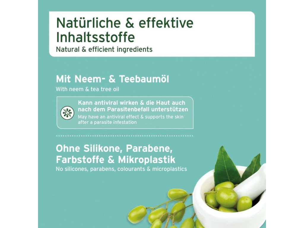 - Vysoce kvalitní, za studena lisovaný neemový olej kombinovaný s esenciálním tea tree olejem.