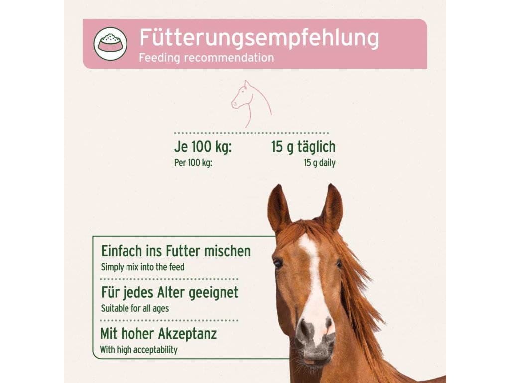 Původní egyptský původ navíc znamená vysoký standard kvality. 100% přírodní semena černého kmínu neobsahují žádné syntetické přísady a těší se vysoké úrovni přijetí mezi koňmi.
