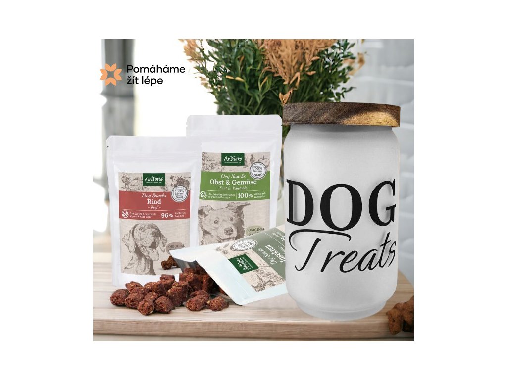 Skleněná dóza/nádoba s víčkem na psí pamlsky/granulky - DOG TREATS 750 ml