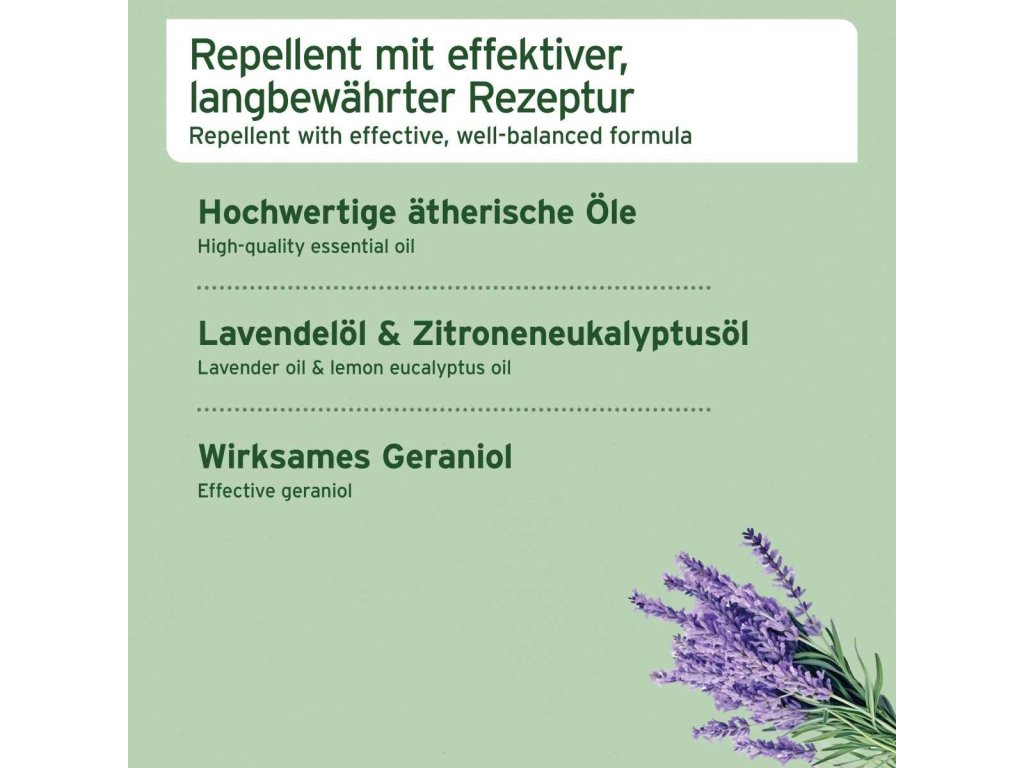 - Účinné složení na bázi esenciálních olejů a geraniolu.