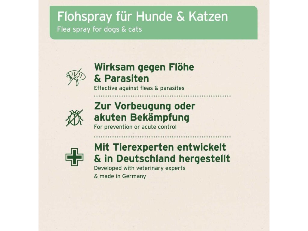 Základem spreje AniForte® Flea-EX je účinná receptura vyrobená z vysoce kvalitních esenciálních olejů v kombinaci s geraniolem. To je přizpůsobeno speciálním potřebám psů a koček, aby vaši miláčci nebyli aplikací nikterak zatížení.