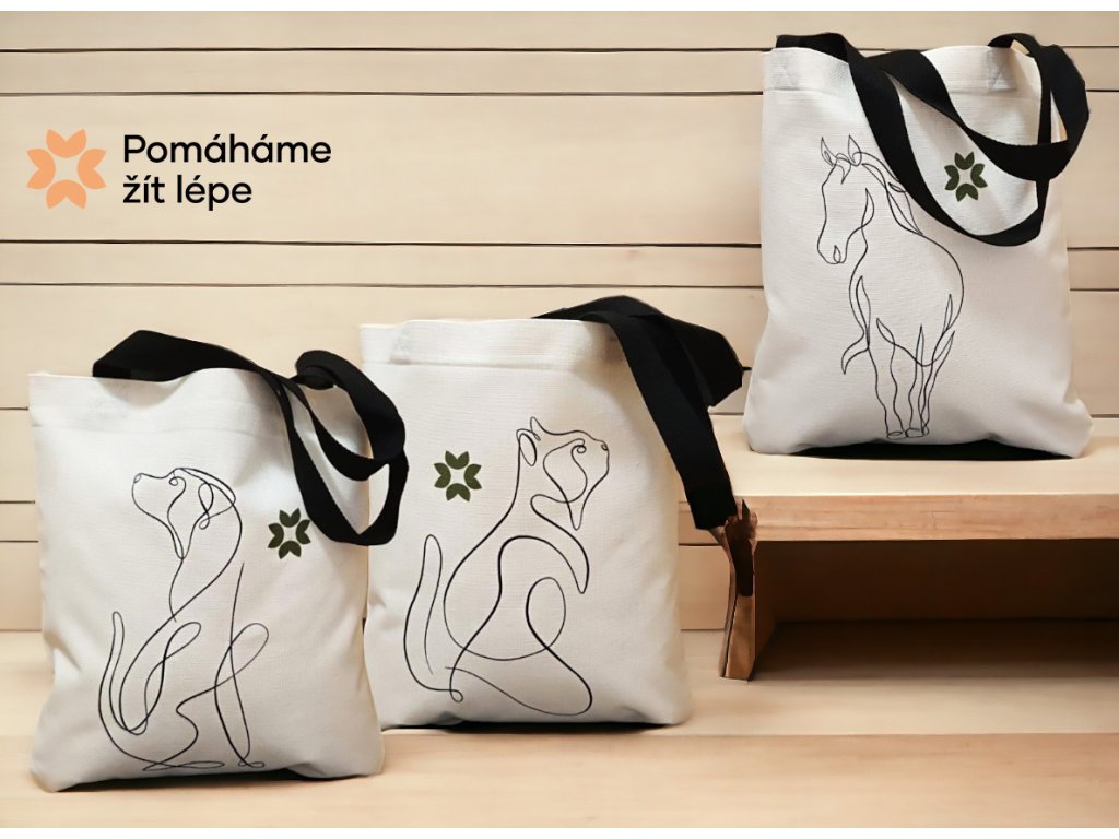 Taška s černýma ušima s naší autorskou kresbou KRÁLÍKA o rozměrech 34 cm x 38 cm.