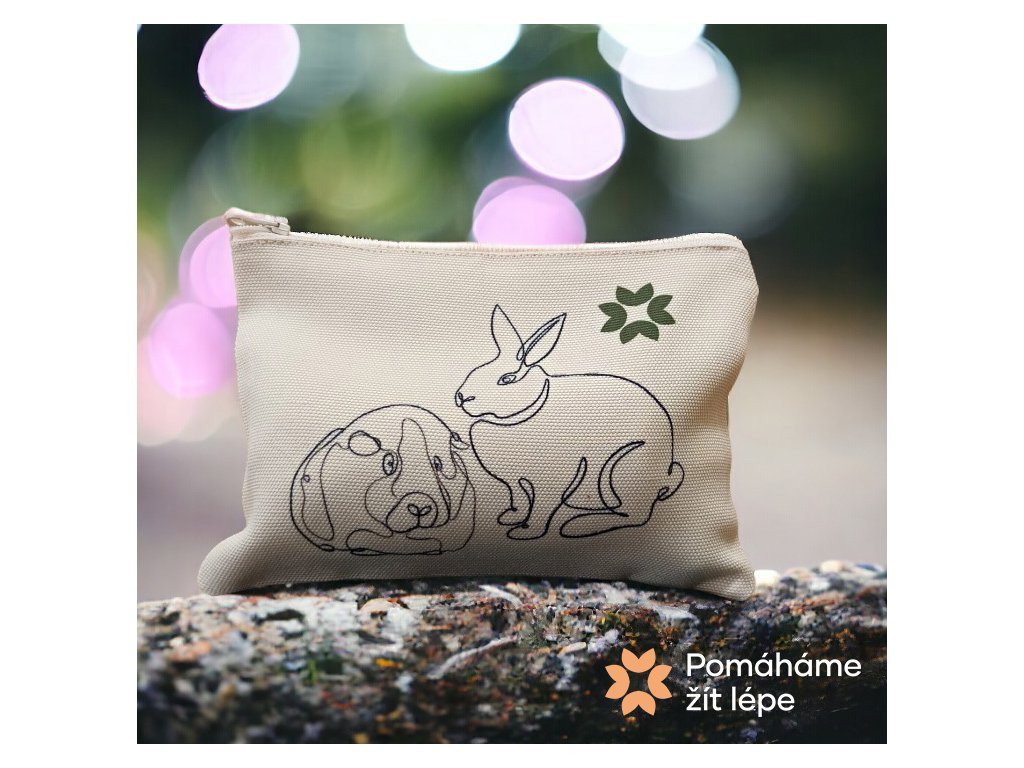 Taštička či pouzdro s naší autorskou kresbou MORČETE a KRÁLÍKA o rozměrech 17,5 cm x 13 cm je vhodná na uložení drobností.