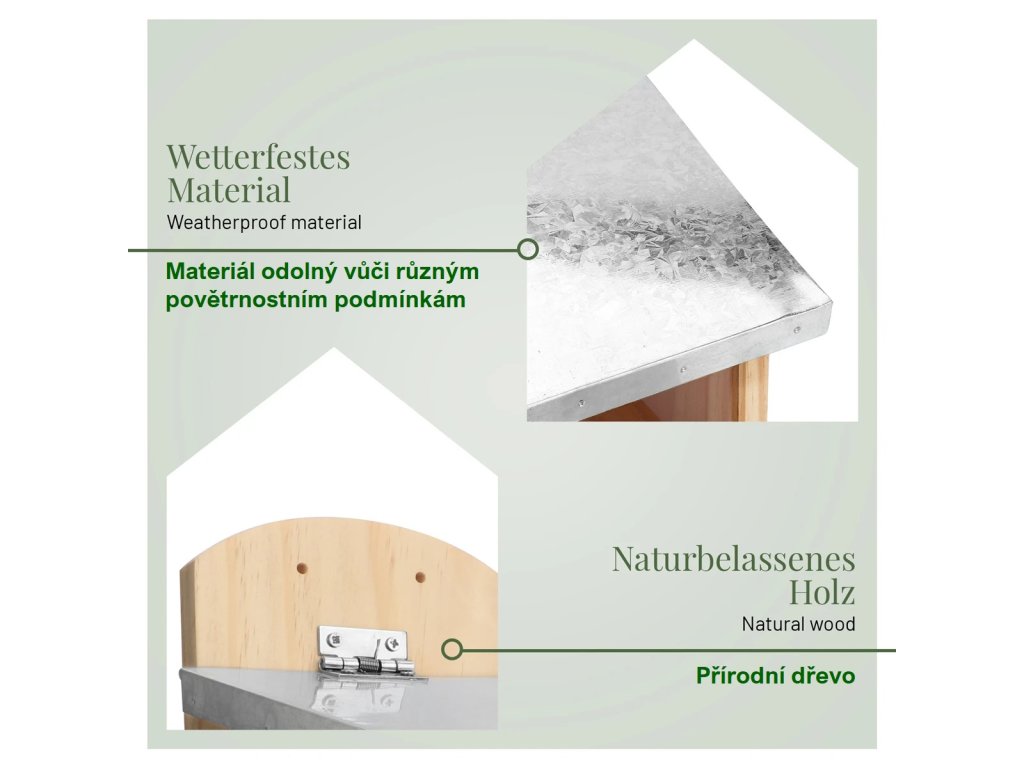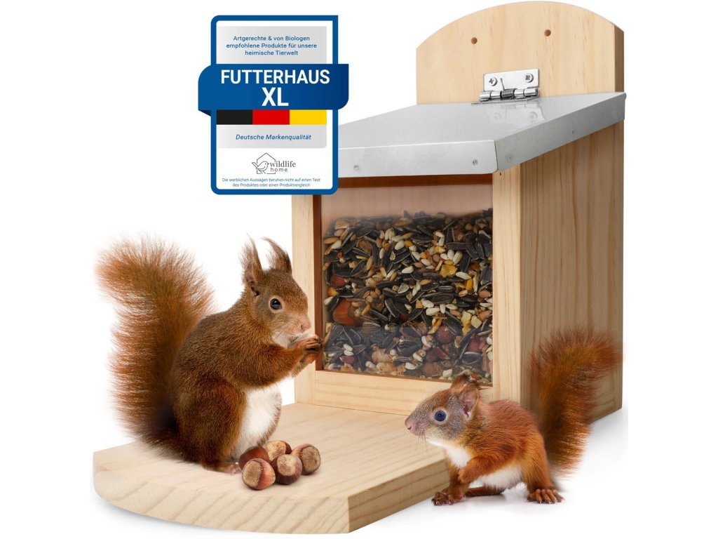 S krmítkem pro veverky WILDLIFE HOME XL proměníte svou zahradu v ráj malých hlodavců. Toto krmítko vyrobené z přírodního borovicového dřeva je nejen robustní a odolné proti povětrnostním vlivům, ale nabízí také obzvlášť prostornou platformu, na které mohou veverky v klidu relaxovat a vychutnávat si svou baštu. Střecha je navíc vyztužena kovem, aby dlouhodobě odolávala povětrnostním vlivům.