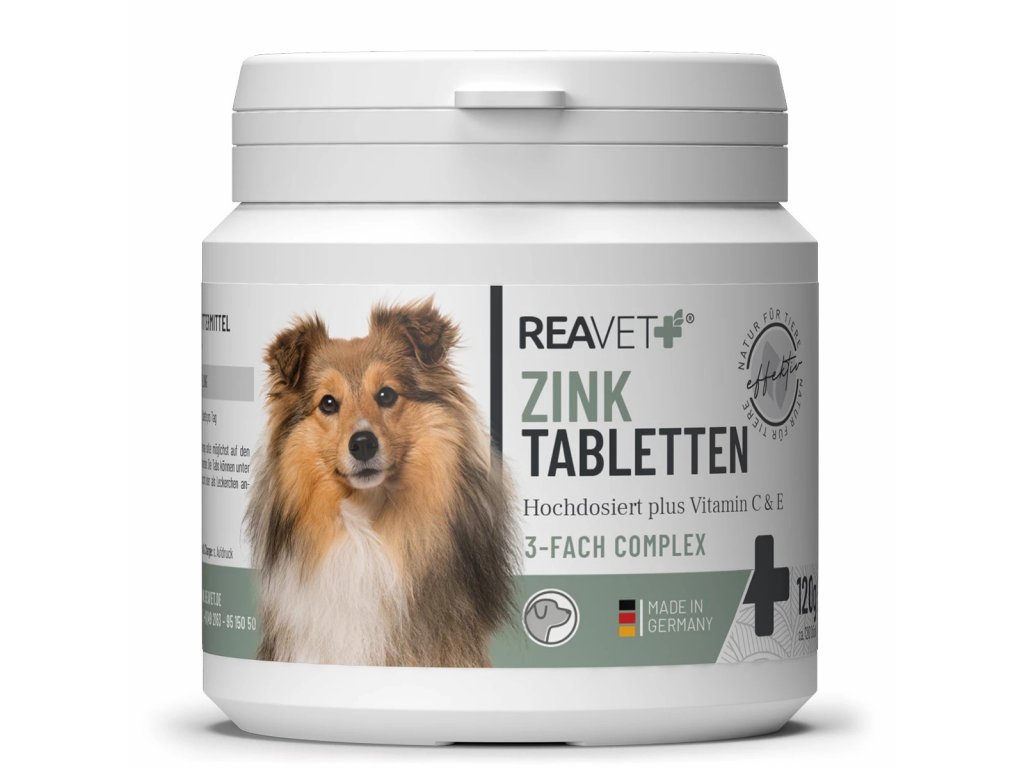 Zinkové tablety REAVET nabízejí jednoduchý, ale extrémně kvalitní způsob, jak docílit zinkové rovnováhy vašeho zvířete! Vysoce dávkovaná prémiová kvalita. Psí tablety poskytují optimální podporu pro přísun zinku pro psy všech plemen. Kromě esenciálního zinku tablety dodávají další cenné vitamíny, jako je vitamín E, B & C, stejně jako biotin a kyselina listová. Zinek je obecně často doplňován při výměně srsti, svědění a pro podporu kůže a imunitního systému psů.